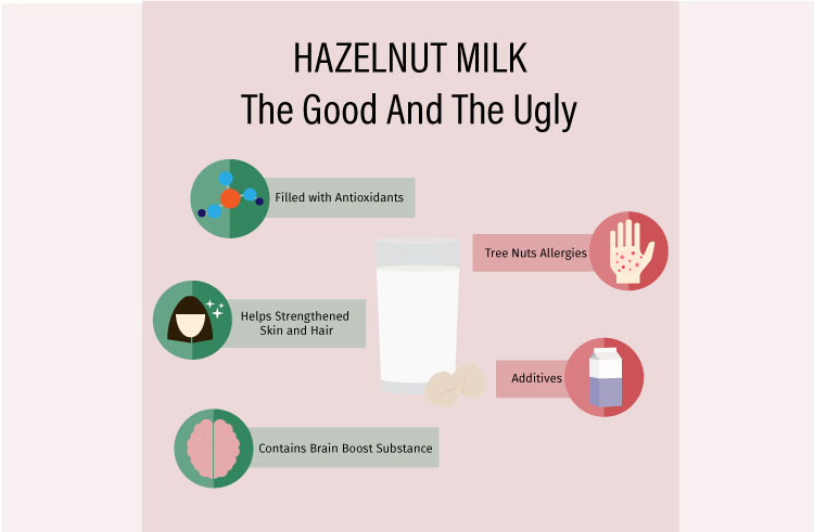 Hazelnut milk is packed with antioxidants and vitamins that helps minimize cellular dysfunction, slow down cellular aging process, promote healthy and elastic skin, and also boost brain performance. It almost sounds to good to be true, however, Hazelnut is one of the tree nuts that can cause severe allergic reaction and most of the hazelnut milk found in the store contains lots of additives especially sugar, so choose wisely!
