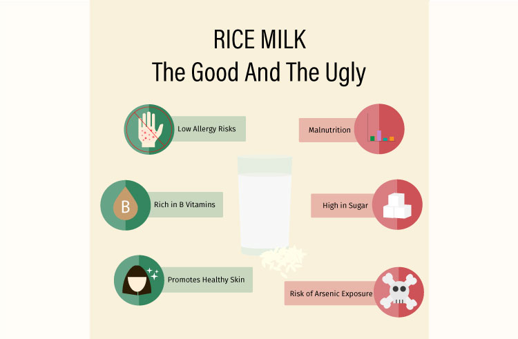 Rice milk and other rice products are know to contain inorganic arsenic more than other food. There are side effects of long-term and heavy consumption of arsenic which are lung, bladder and skin cancer. However, the amount of arsenic in rice milk is not harmful to adult. It is suggested strongly to be kept away from infant and young children and is not suitable for mother who is breastfeeding the infant. Studies found the effect of arsenic on young children weakening their immune system and neurodevelopment.